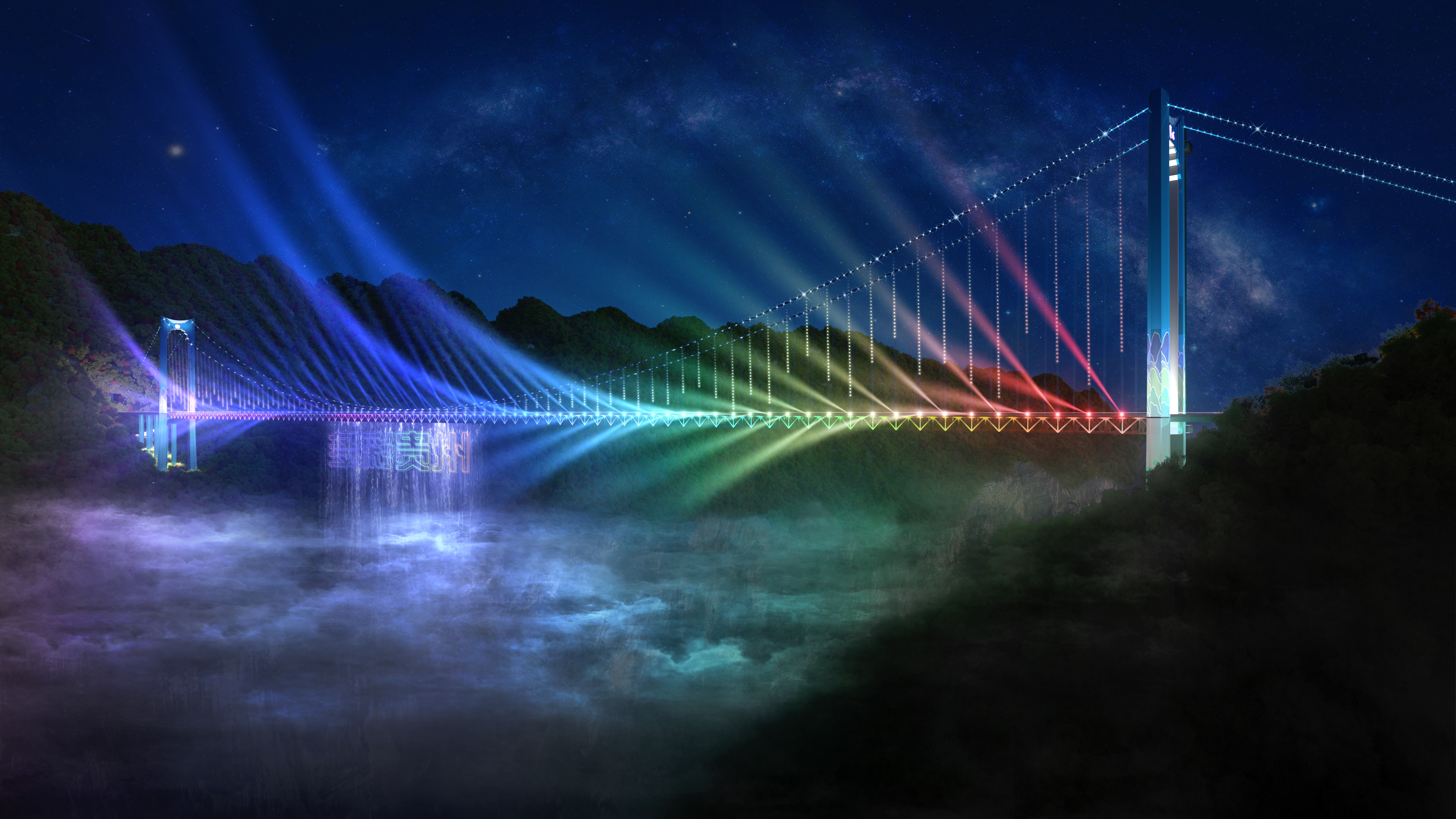 作為貴州省橋旅融合示范項目,花江峽谷大橋水幕光影秀不僅打破了傳統(tǒng)夜游純觀賞模式的桎梏,更以“自然+文化+科技”的三重賦能,成為激活地方旅游的“超級引擎”,為行業(yè)樹立了橋梁文旅開發(fā)的新標(biāo)桿。項目迅速成為全國矚目的文旅爆款和現(xiàn)象級“流量密碼”,這場融合山水人文與光影科技的盛宴,正以"世界級地標(biāo)"的姿態(tài),重新定義中國橋旅融合的新高度。